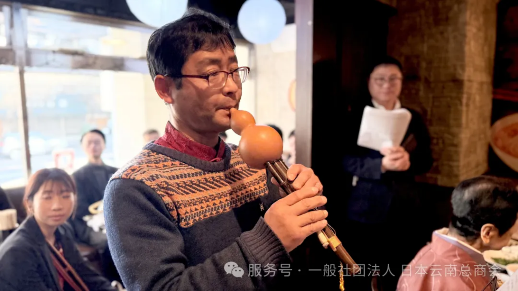 さらに、日本の友人による葫芦絲の演奏が披露され、会場の雰囲気は最高潮に達しました。悠然と響く旋律は、まるで瀾滄江のほとりから吹き渡る風のように広がり、澄んだ音色が言葉の壁を越えて来場者の心に深く届きました。