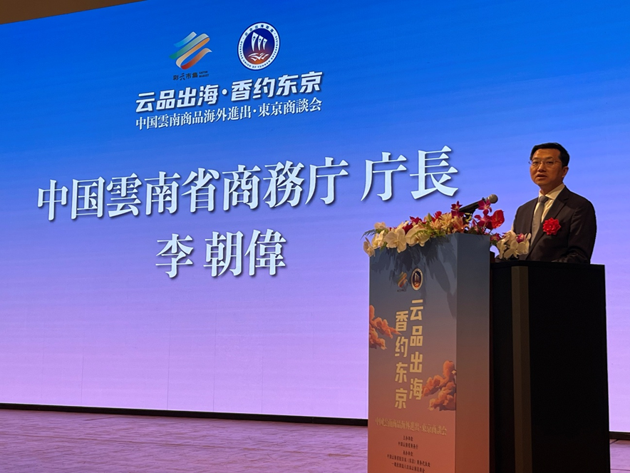 「雲南は中国南西部における対外開放の前線基地です。今回、高原の優良産品と特色ブランドを東京で一堂に紹介できたことは、既存の協力基盤をさらに発展させ、高品質な経済・貿易交流を推進する新たな出発点となります。」