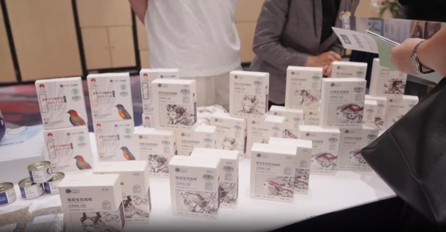 保山・潞江坝の 「比頓コーヒー」 は有機小粒コーヒー豆とドリップバッグシリーズを展示し、北緯25度「黄金コーヒーベルト」の地理的優位性と、約4,500ムー(約300ヘクタール)のグリーン栽培・年間約2,000トンの生産力を紹介しました。